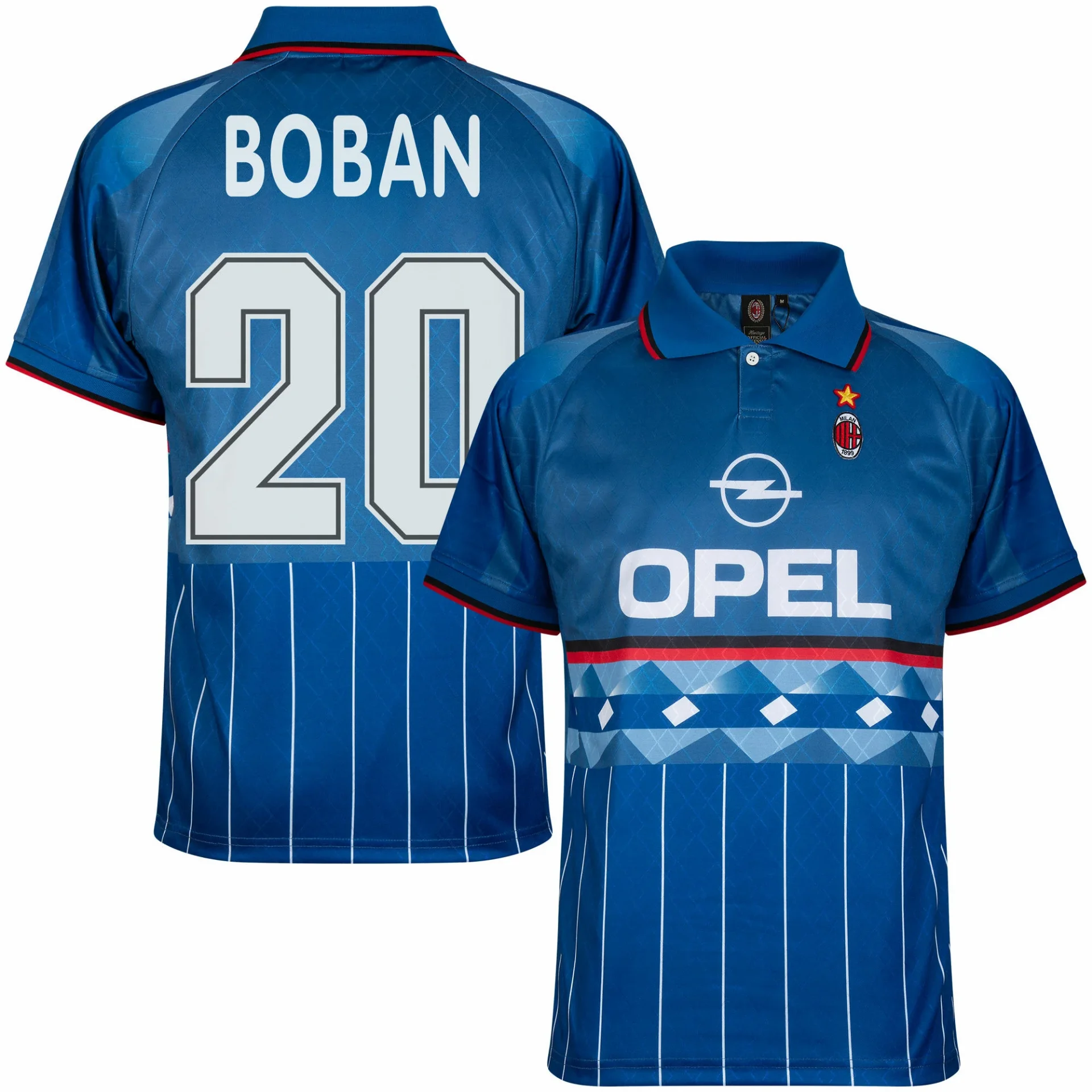 Dies ist das offizielle AC-Milan-Retro-Fußballtrikot (4. Trikot) aus der Saison 1995–1996. Auf der Rückseite befindet sich der Aufdruck Boban (20). Dieses Milan-Retro-Trikot basiert auf dem vierten Trikot von AC Milan aus der Saison 1995/96. Das Trikot ist überwiegend blau gehalten. In der Mitte steht der Name des damaligen Hauptsponsors OPEL. Auf der linken Brust befindet sich das Logo von AC Milan mit einem goldenen Stern darüber. Der untere Rand des Retro-Trikots ist mit feinen weißen Streifen versehen. Außerdem verfügt dieses AC-Milan-Retro-Trikot über einen Kragen mit Knopf sowie einen blauen Polokragen mit einer roten und schwarzen Linie. Auch die Ärmelbündchen enthalten diese Farben. Ein großartiges AC-Milan-Fußballtrikot für den echten Milan-Fan!Das AC-Milan-Retro-Fußballtrikot von COPA Football hat eine normale Passform. Material: 100 % recyceltes Polyester.