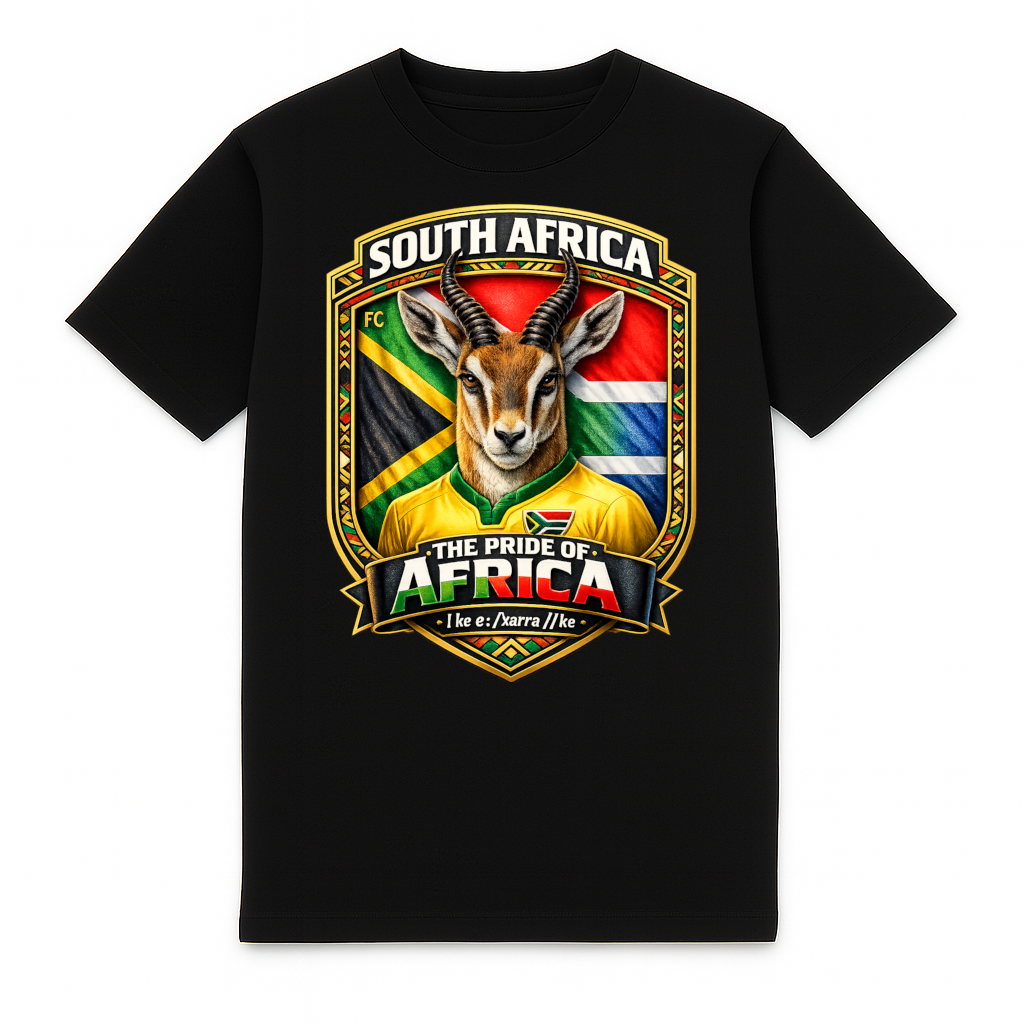 Super t-shirt de football Afrique du Sud de FC ELEVEN pour adultes. Ce t-shirt heavy est fabriqué en coton biologique épais. Le dos du t-shirt attire immédiatement l'attention avec un imprimé puissant de l'Afrique du Sud représentant l'emblématique springbok africain, réalisé dans les couleurs de l'Afrique du Sud. Cet animal puissant est accompagné du surnom fier de l'équipe et de la devise inspirante du pays "Unité dans la diversité". Un design plein de caractère et de signification.