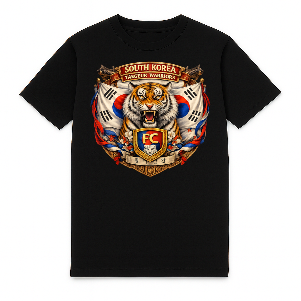 T-shirt heavy Corée du Sud élégant pour adultes de FC ELEVEN. Ce T-shirt heavy est fabriqué en coton biologique épais. Le dos du T-shirt présente un imprimé d’un blason avec une impression 3D d’un tigre et des drapeaux de la Corée du Sud en arrière-plan. Cet imprimé est entièrement réalisé dans le style des couleurs nationales du pays. Le logo contient également le texte Taegkeuk Warriors, spécialement conçu pour soutenir l’équipe nationale de Corée du Sud. Le T-shirt est en outre doté des initiales de la marque FC en noir sur la poitrine gauche. Il s’agit d’un logo en silicone. Le T-shirt heavy est entièrement noir et possède un col rond. Le T-shirt est fabriqué en coton épais et a une coupe normale. Matière: 100% coton biologique.
