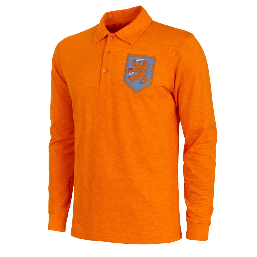 Dies ist das Retro-Trikot der niederländischen Nationalmannschaft von COPA Football aus der offiziellen KNVB-Kollektion. Dieses Retro-Fußballtrikot ist selbstverständlich orangefarben und basiert auf dem Trikot aus dem Jahr 1959. Das Holland-Retro-Trikot zeichnet sich durch seinen Polokragen aus, der dem Trikot einen besonders coolen Vintage-Look verleiht. Auf der linken Brust befindet sich ein schönes blaues Holland-Emblem mit einem Löwen. Außerdem ist das Trikot mit langen Ärmeln ausgestattet. Ein großartiges Fußballtrikot der niederländischen Nationalmannschaft für den echten Oranje-Fan! Die Retro-Trikots von COPA haben eine normale Passform. Ein schönes Shirt für den Königstag, eine EM oder eine Fußball-WM.